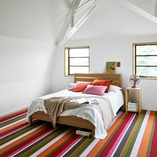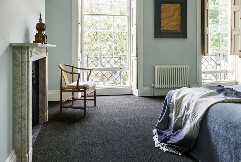 A velvet-style bedroom carpet made with nylon makes a good choice if you have children or pets. This style looks luxurious and expensive, but nylon is more stain resistant than natural fibres to help you cope with any dirt or spillages.